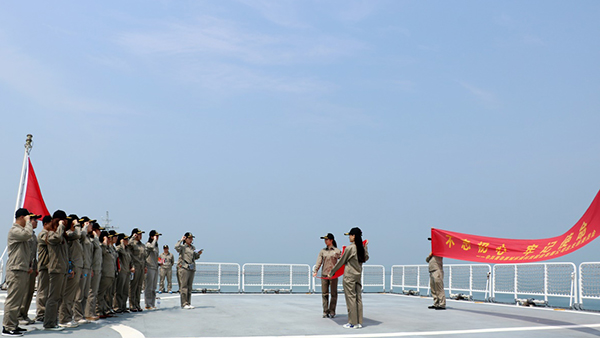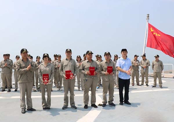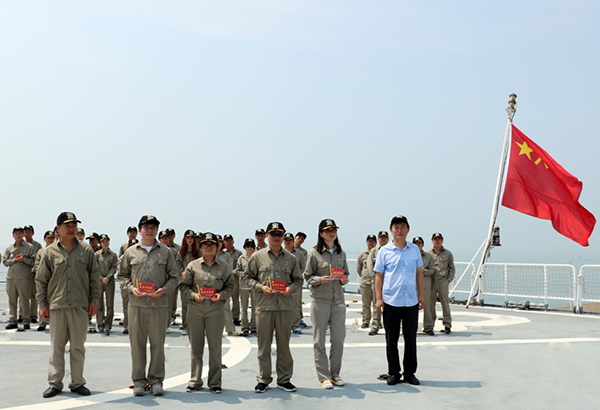 在军舰上重温入党誓词